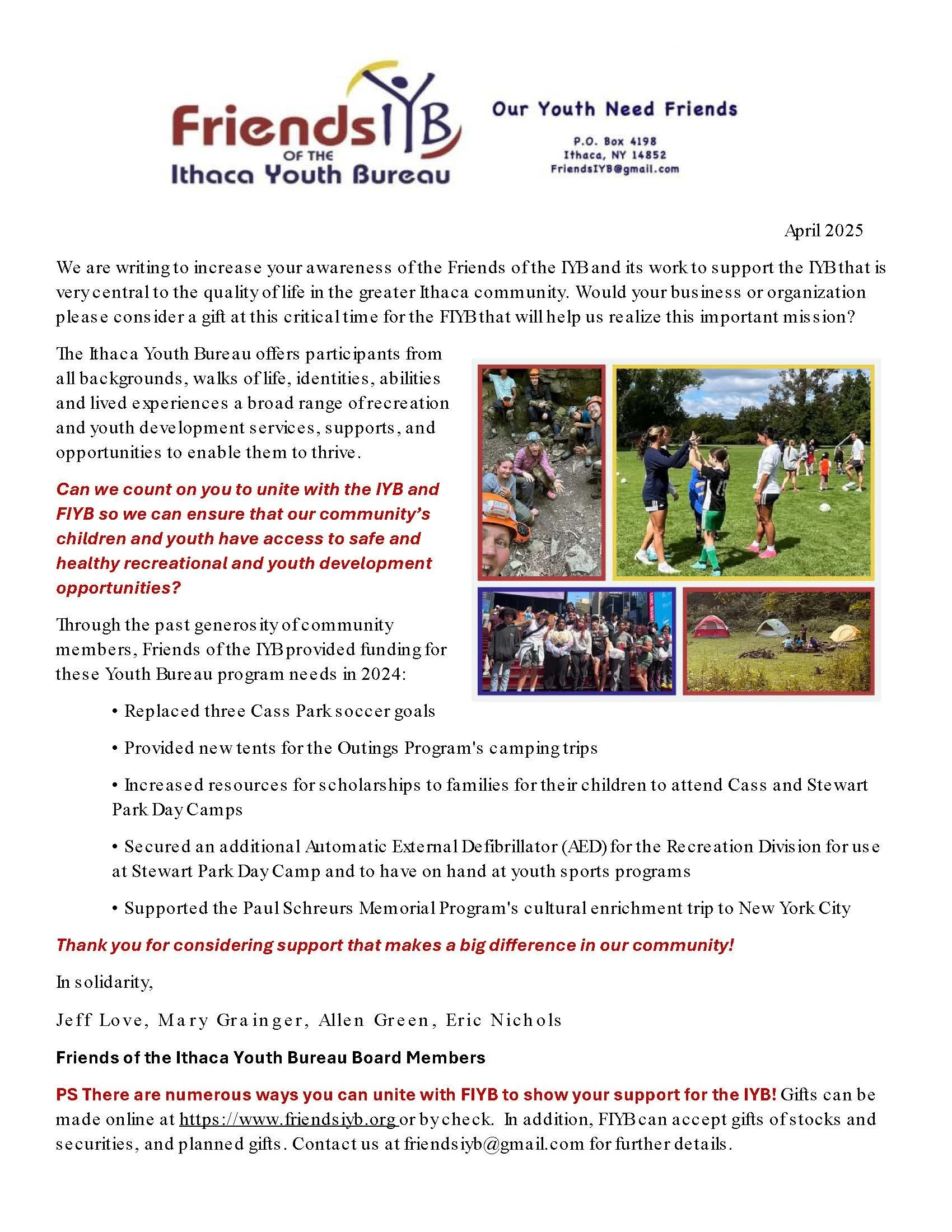 “The Friends of the Ithaca Youth Bureau is dedicated to supporting the IYB’s wide range of programs for tots to teenagers.”